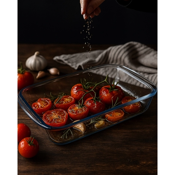 Fabricada em vidro borossilicato de alta durabilidade, suporta altas temperaturas e variações de calor sem comprometer sua resistência. Com capacidade de 2200ml, é ideal para assados médios, unindo praticidade, segurança e elegância para diferentes receitas.