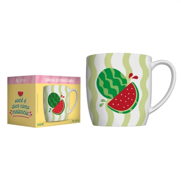 A Caneca Porcelana Frutas 360ML Na Luva - Melancia é a escolha perfeita para quem busca um toque descontraído e moderno em seu dia a dia. Com design inspirado nas frutas, especialmente na melancia, esta caneca traz uma explosão de cores e frescor para cada gole. Ideal para cafés, chás ou qualquer bebida gelada, ela é perfeita para quem gosta de produtos que combinam funcionalidade com estilo. Ideal para bares, restaurantes, lojas de presentes e revendedores.