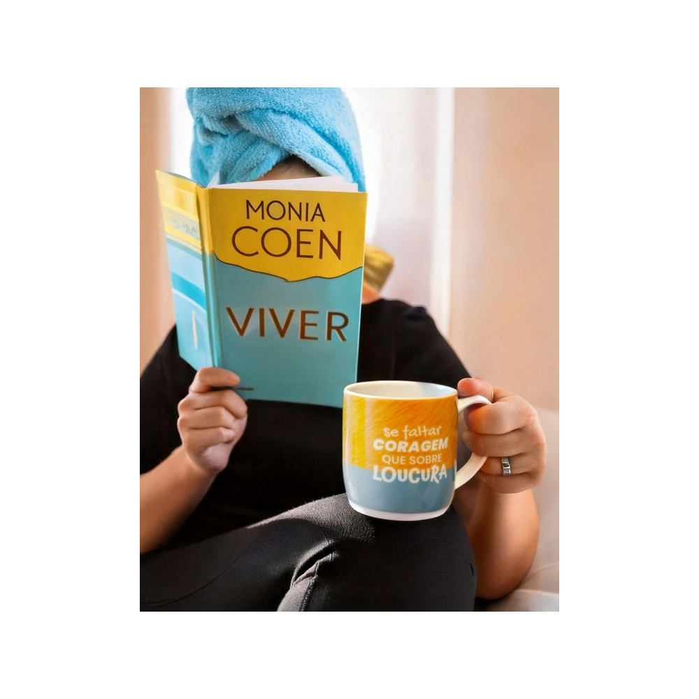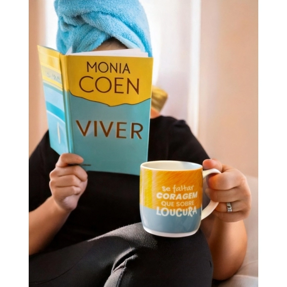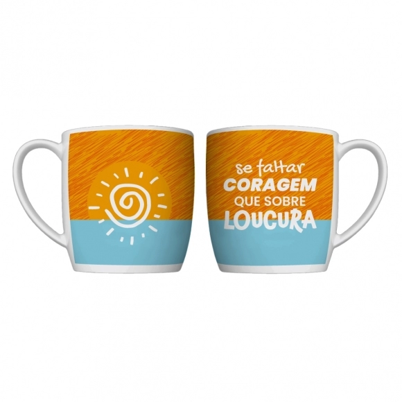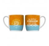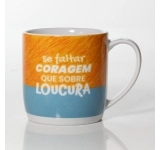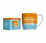 Produzida em porcelada com estampa "Se faltar coragem, que sobre loucura!". Possui 360ml, ideal para servir bebidas quentes. Contém embalagem personalizada, sendo uma excelente opção para presentes.