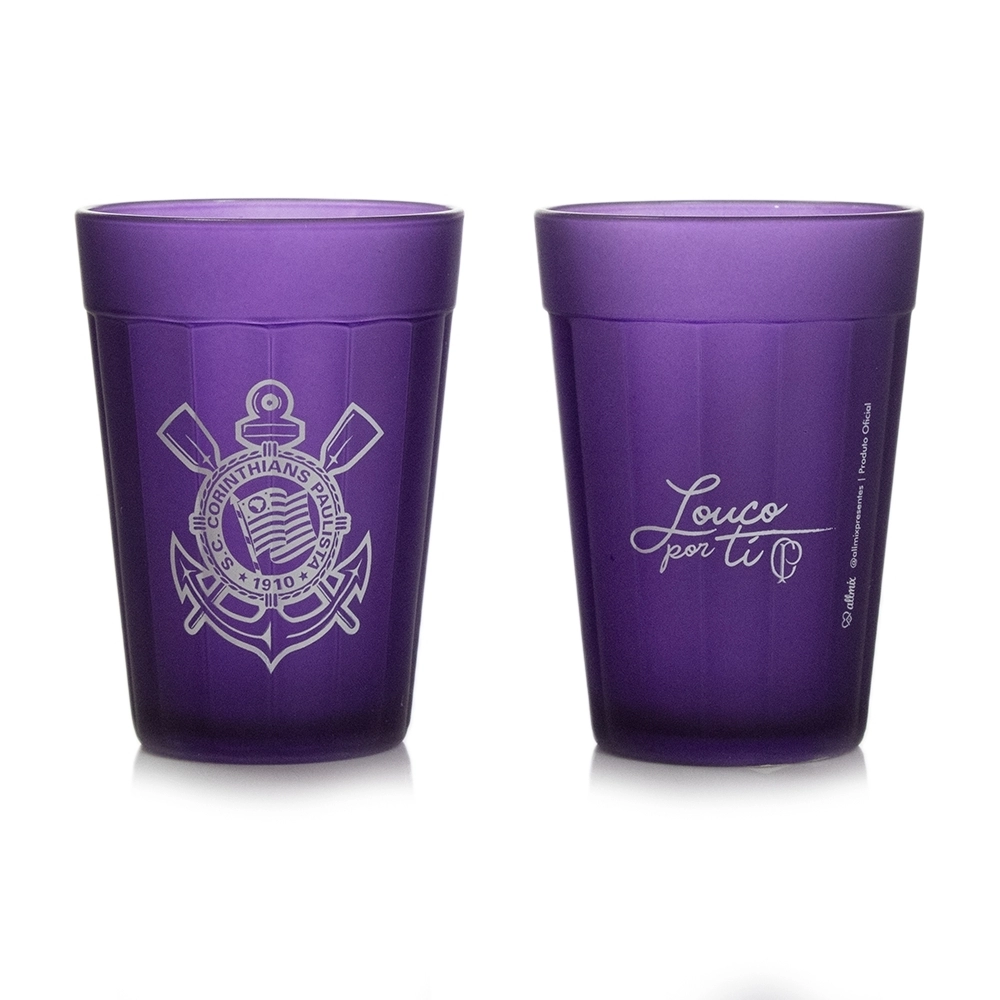 Coleção inspirada nos torcedores do Todo Poderoso Timão. Produzido em vidro na cor roxo com acabamento fosco, escudo do time em branco e dizeres "Louco Por Ti". Possui 190 ml, ideal para servir Chopes e Cervejas. Contém embalagem personalizada, sendo uma excelente opção para presentes.
