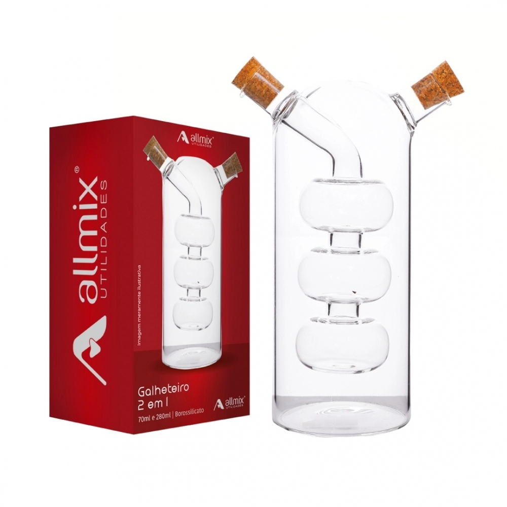 Além de sua resistência e versatilidade, o galheteiro possui um visual moderno e sofisticado, com acabamento transparente que valoriza os líquidos armazenados. Perfeito para servir condimentos na mesa com estilo, é também uma excelente opção de presente para quem aprecia utensílios de cozinha de alta qualidade.