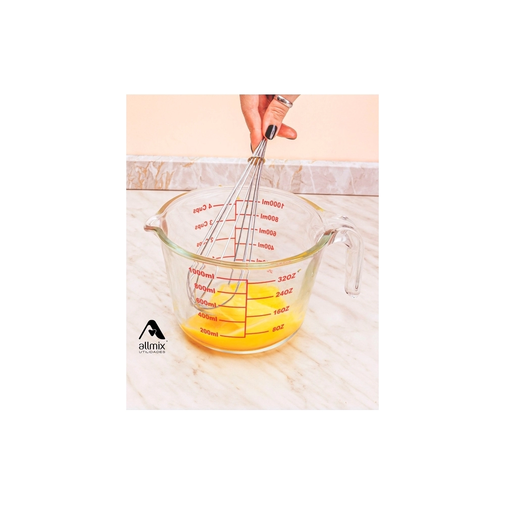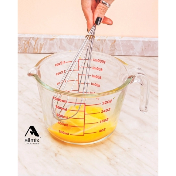 Chegou a Jarra Medidora de Vidro da Allmix! O produto ideal para proporcionar facilidade e praticidade na sua cozinha. Com 1.000ml de capacidade e gradação em xícaras, ml e onça, possibilita a medição de ingredientes secos ou líquidos, garantindo a quantidade exata para a sua receita.