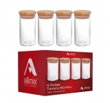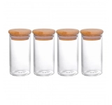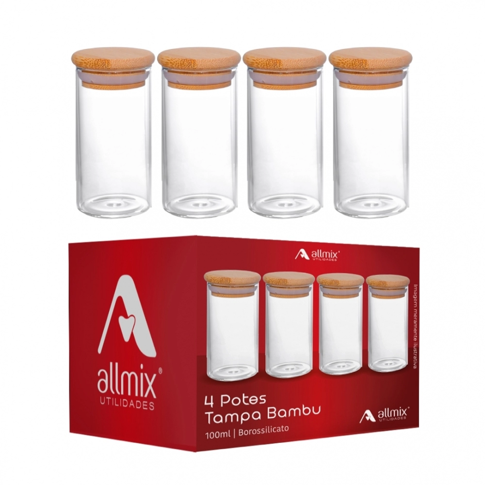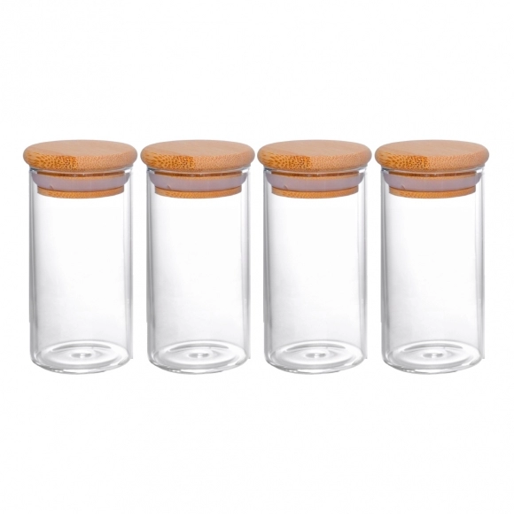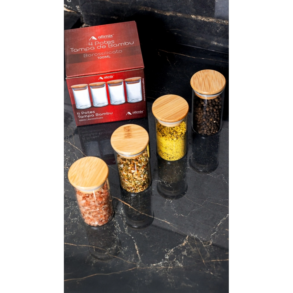 Pote Borossilicato Redondo 100ml Com Tampa Bambu – Kit com 04 para Armazenamento de Alimentos e Organize Sua Cozinha
