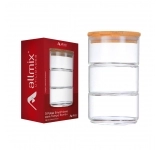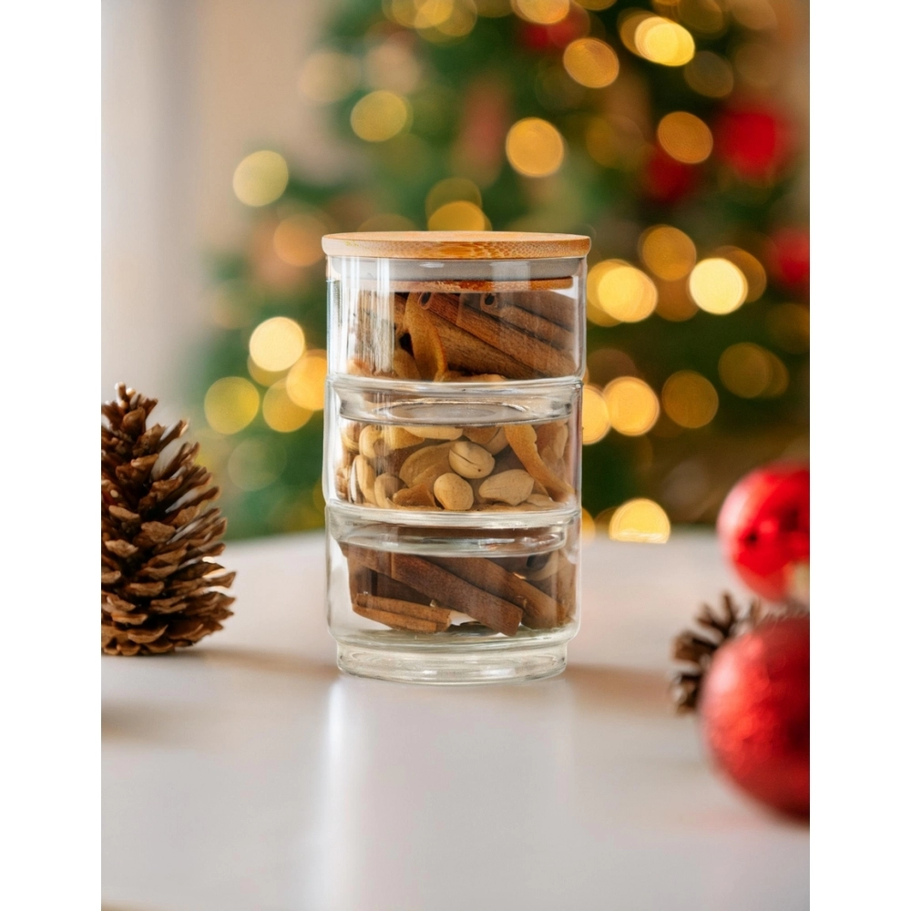 Esse conjunto vem com 3 unidades, proporcionando versatilidade para o dia a dia. O Pote de Borossilicato Redondo Empilhável com Tampa Bambu é ideal para quem busca praticidade, beleza e organização, tanto na cozinha quanto na hora de servir.