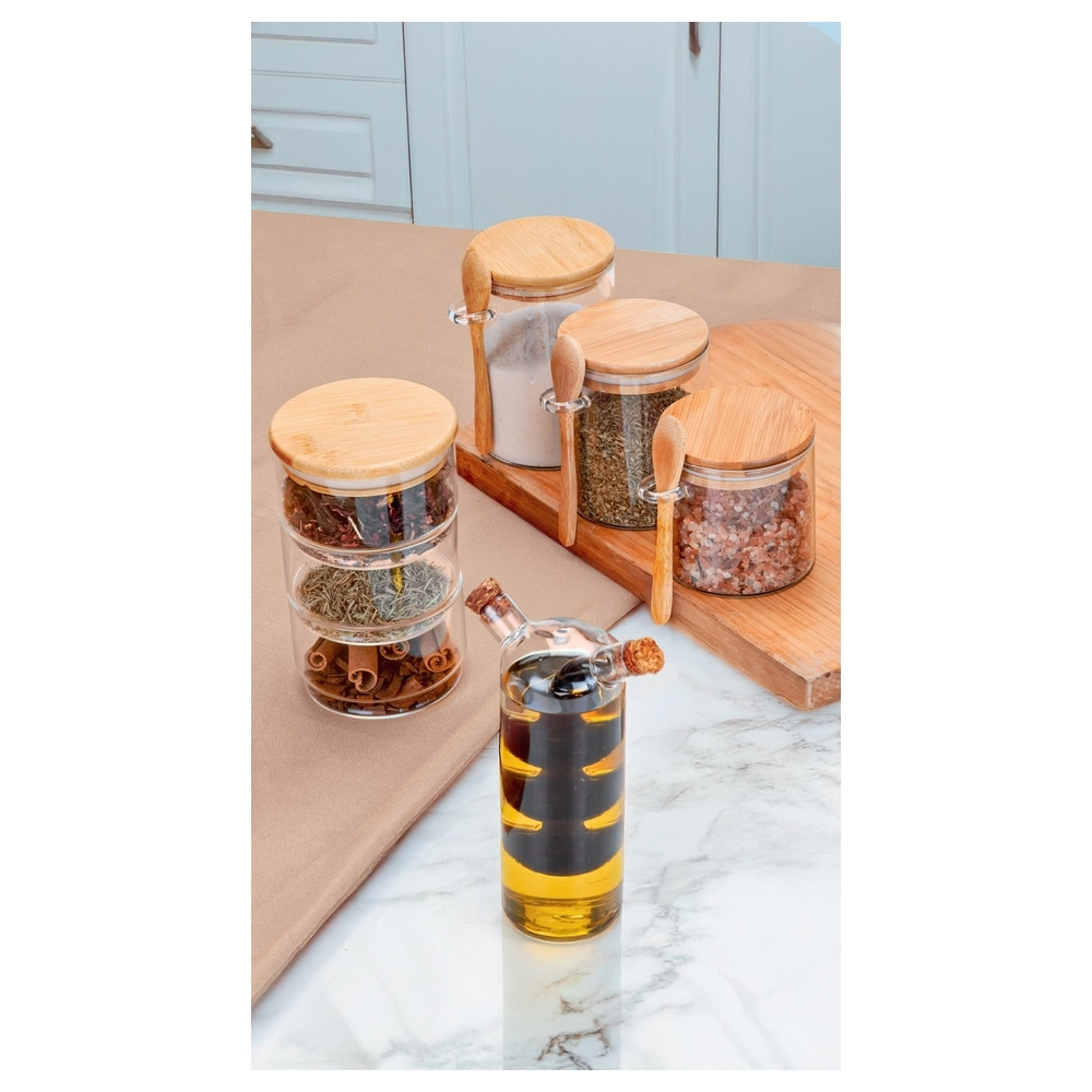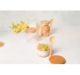 Design Elegante e Funcional – Combinação perfeita entre o vidro e a colher de bambu, oferecendo praticidade e sofisticação.