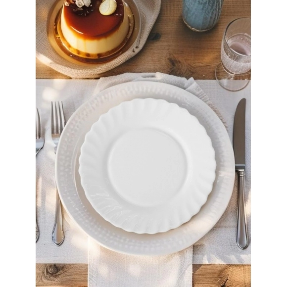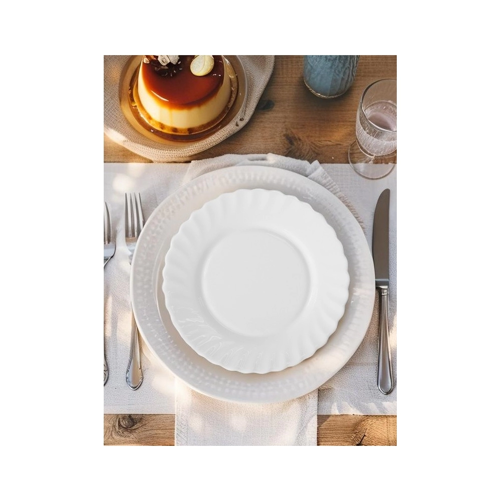 Com design moderno, cor branca versátil e acabamento refinado, o prato é perfeito para compor mesas com sobremesas, frutas, petiscos ou servir em eventos. Seu formato funcional facilita o empilhamento e o armazenamento, otimizando o espaço na loja ou no estoque do revendedor.
