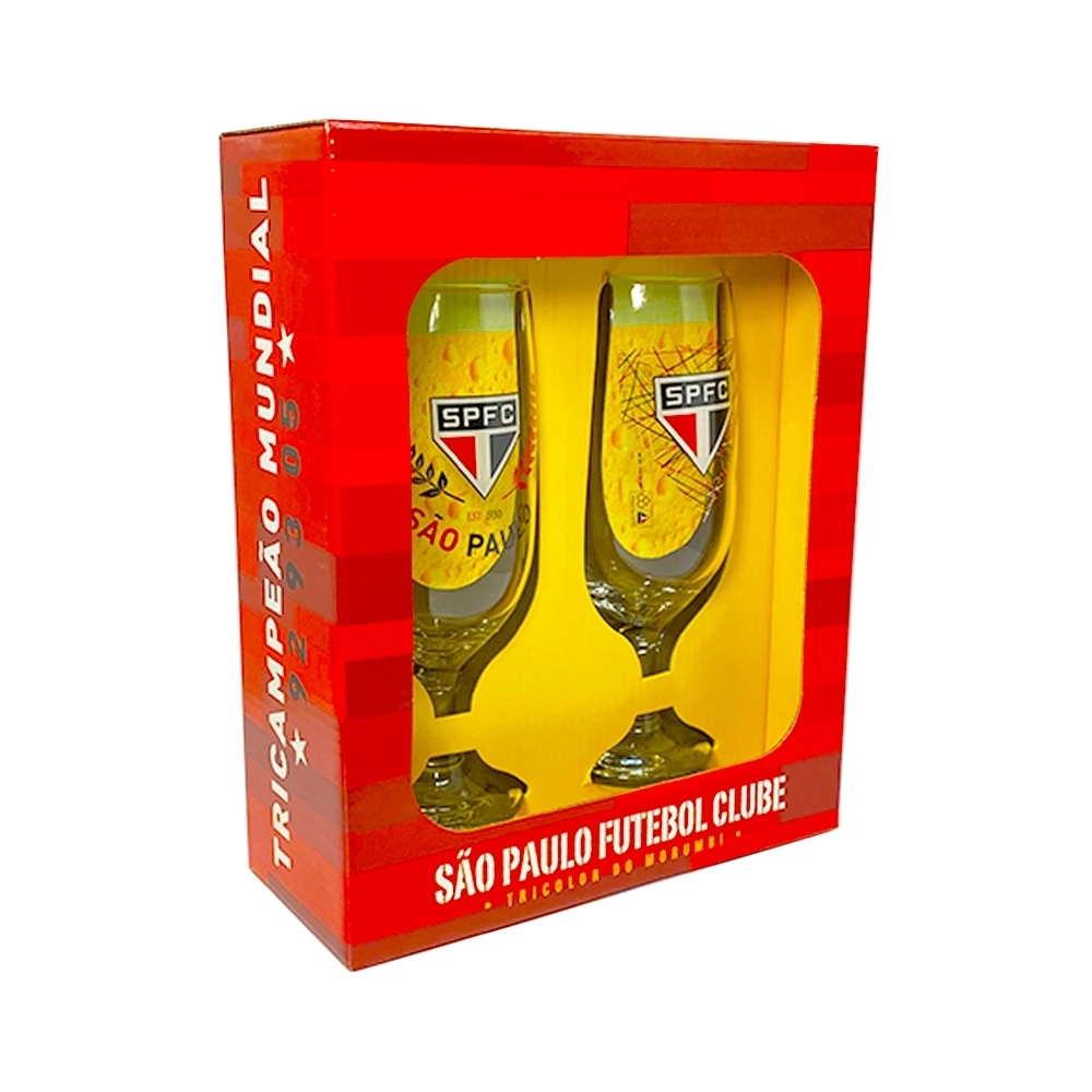 Conjunto com 2 Unidades – Perfeito para quem quer celebrar em companhia de amigos ou para presentear outros torcedores do São Paulo.