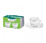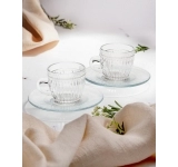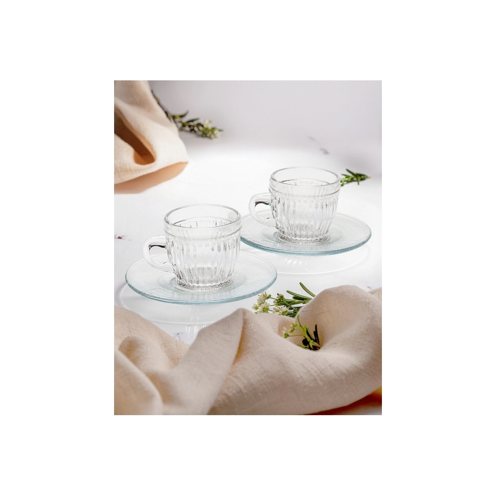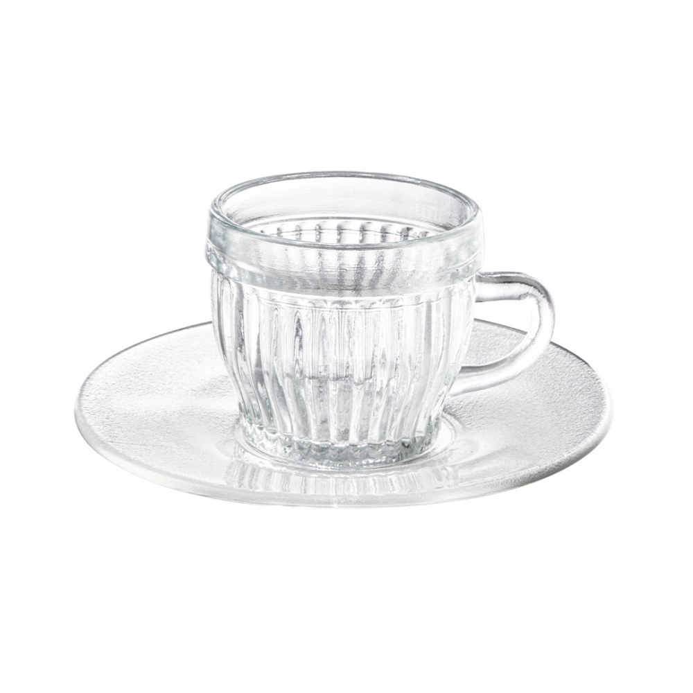 Feita de vidro de alta qualidade, a xícara possui 85 ML de capacidade, sendo ideal para porções de café espresso ou cappuccinos. O pires incluso adiciona um toque de sofisticação, garantindo a conveniência de servir o café de forma completa. Seu design simples e clássico permite que ela se adapte a diferentes estilos de decoração, tornando-se uma excelente opção tanto para uso diário quanto para revenda em lojas de utensílios domésticos, lojas de presentes e estabelecimentos do setor de utilidades.