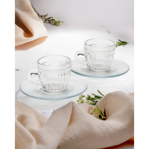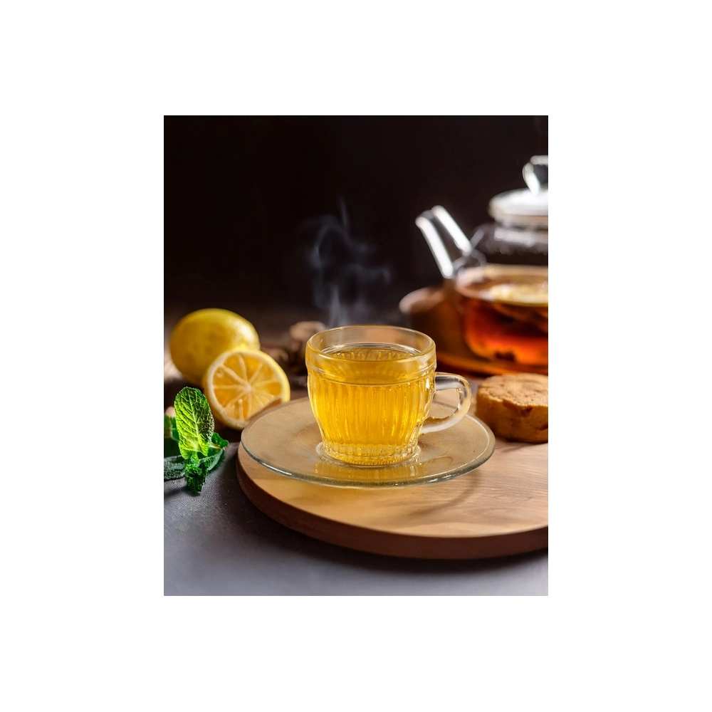 Design Sofisticado: Combinação de vidro de alta qualidade e pires, ideal para ocasiões especiais ou uso diário.