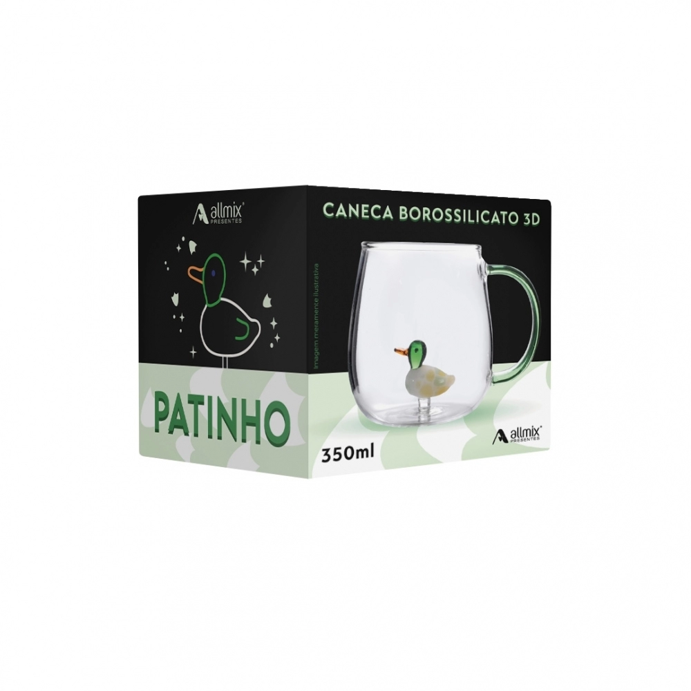 A Caneca Borossilicato 3D 350ML - Patinho é a escolha perfeita para quem procura um produto criativo e resistente, com um design encantador que se destaca. Feita de borossilicato de alta qualidade, ela oferece durabilidade superior e é ideal para presentear ou para uso próprio, especialmente para aqueles que apreciam produtos exclusivos e personalizados.