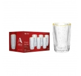 Este link contém: o Copo de Vidro Long Drink Laure Filete Dourado 250ml, uma peça que une sofisticação, praticidade e design elegante. O delicado filete dourado realça a apresentação das bebidas, tornando-o ideal para mesas refinadas, restaurantes, hotéis ou ocasiões especiais em residências.