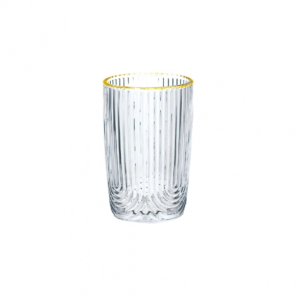 Fabricado em vidro de alta qualidade, este copo é durável e valorizado pela estética do filete dourado, sendo um destaque em qualquer mesa posta.