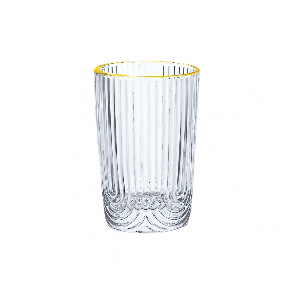 Fabricado em vidro de alta qualidade, o copo Laure Filete Dourado é um item de destaque que valoriza a apresentação das bebidas e oferece durabilidade.