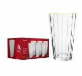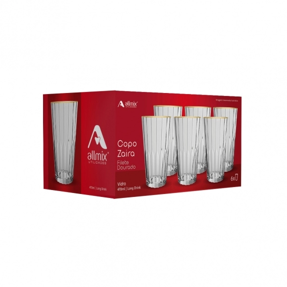 Este link contém: o Copo de Vidro Long Drink Zaira Filete Dourado 470ml, uma peça que combina sofisticação e exclusividade em cada detalhe.