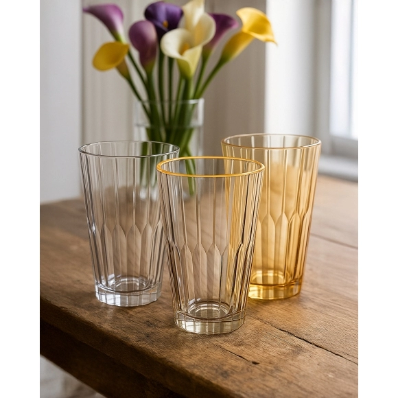 Com sua tonalidade exclusiva em vidro Gold, ele proporciona um brilho diferenciado que valoriza qualquer mesa posta e transforma cada brinde em um momento especial. Seu tamanho de 470ml é ideal para servir drinks, sucos, refrigerantes e coquetéis, sempre com estilo.