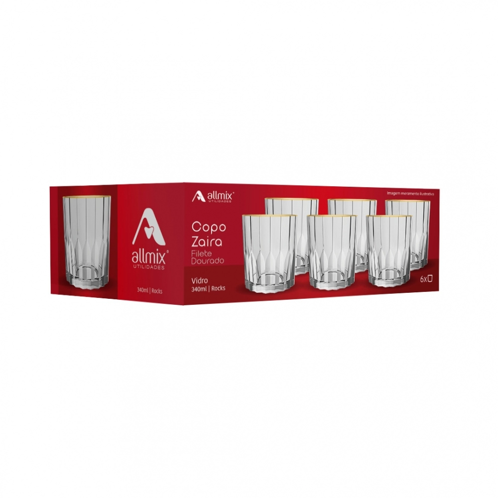 Este link contém: o Copo de Vidro Rocks Zaira Filete Dourado 340ml, que une a robustez do clássico modelo Rocks com a delicadeza de um filete dourado elegante. Esse detalhe sutil transforma a peça em um item de sofisticação, ideal para tornar qualquer ocasião ainda mais especial.
