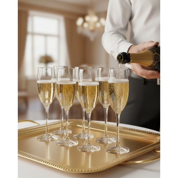 Este link contém: a Taça Champanhe de Vidro Roma 185ml, perfeita para servir champanhe, espumantes ou drinks em festas, eventos, bares e residências.