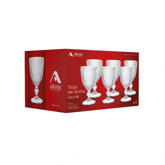 Este link contém: a Taça de Vinho de Vidro Laure Filete Dourado 330ml, uma peça exclusiva que une sofisticação, requinte e elegância. O delicado filete dourado adiciona charme e valor estético à mesa posta, tornando-a perfeita para eventos, restaurantes e ocasiões especiais em residências.