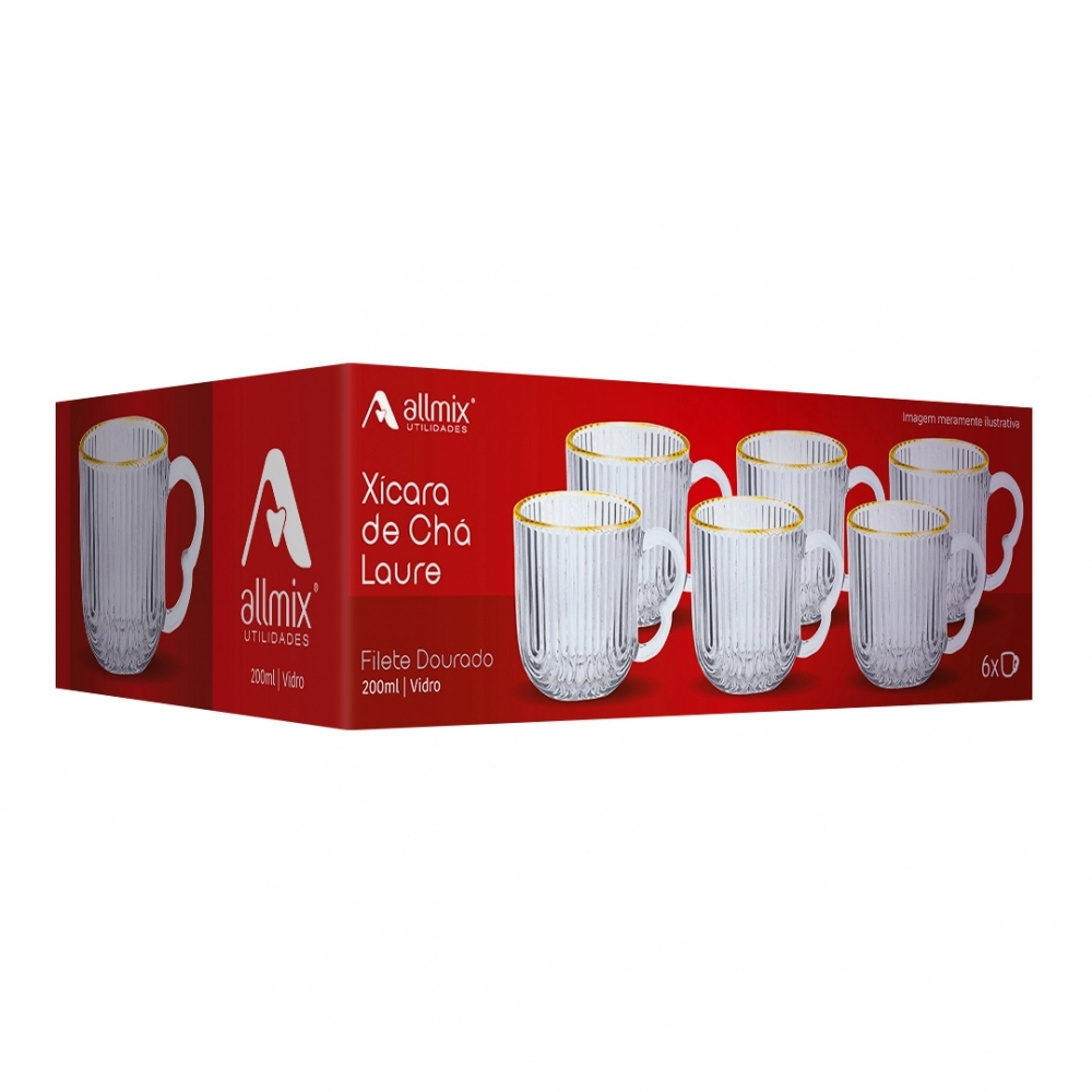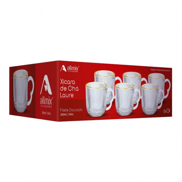 Este link contém: a Xícara de Chá de Vidro Laure Filete Dourado 180ml, uma peça refinada que transforma o ato de servir em um momento especial. Seu acabamento em vidro transparente com delicado filete dourado confere sofisticação, tornando-a ideal para compor mesas elegantes em residências, hotéis, restaurantes e eventos.