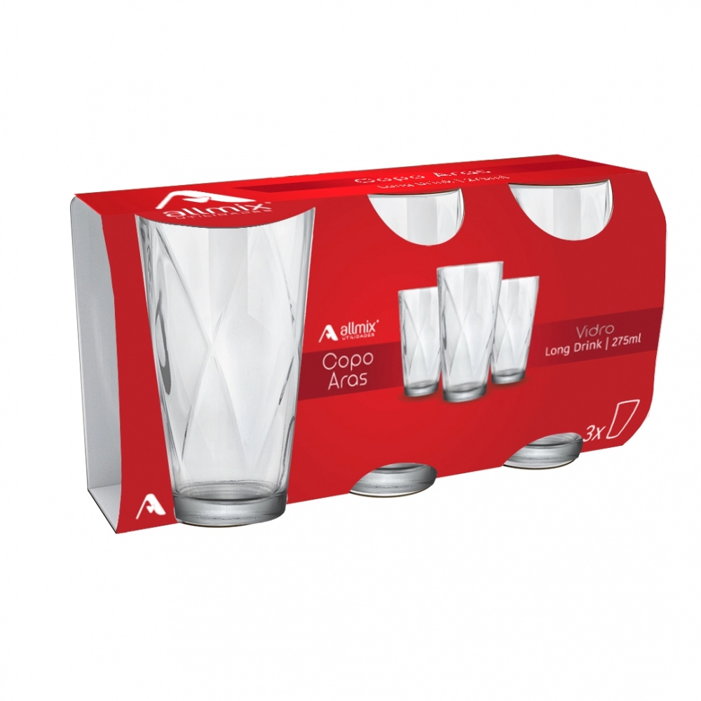 Este link contém: o Copo de Vidro Long Drink Aras 275 ml Luva com 3, uma peça elegante e resistente que une sofisticação e praticidade para servir drinks, coquetéis, sucos e outras bebidas em bares, restaurantes, hotéis, pousadas ou no uso doméstico. Seu design moderno valoriza qualquer mesa posta, tornando-o ideal para eventos especiais, kits de presentes ou para uso diário. Com capacidade de 275 ml e dimensões de 7,8 x 12,4 x 7,8 cm, o copo Aras proporciona conforto ao manuseio e estilo refinado, sendo durável, resistente e fácil de higienizar. Produzido em vidro de alta qualidade, combina estética e funcionalidade em um só produto.