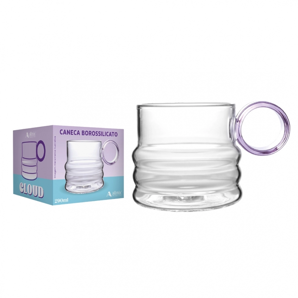 Ofereça aos seus clientes um produto que une beleza, inovação e funcionalidade. A Caneca Borossilicato Cloud 290ml Purple é a escolha perfeita para quem deseja agregar valor ao mix da sua loja.