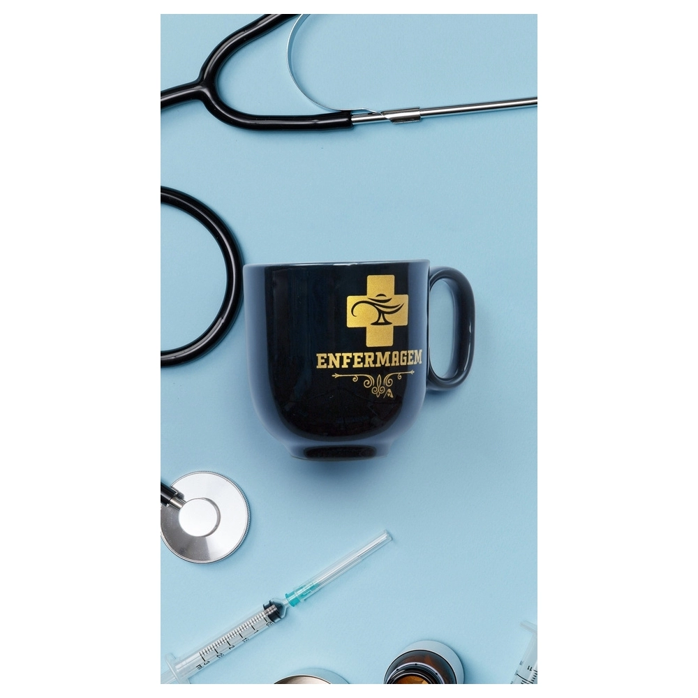 Caneca Forma Preta Enfermagem 350 ML – Para Profissionais de Saúde