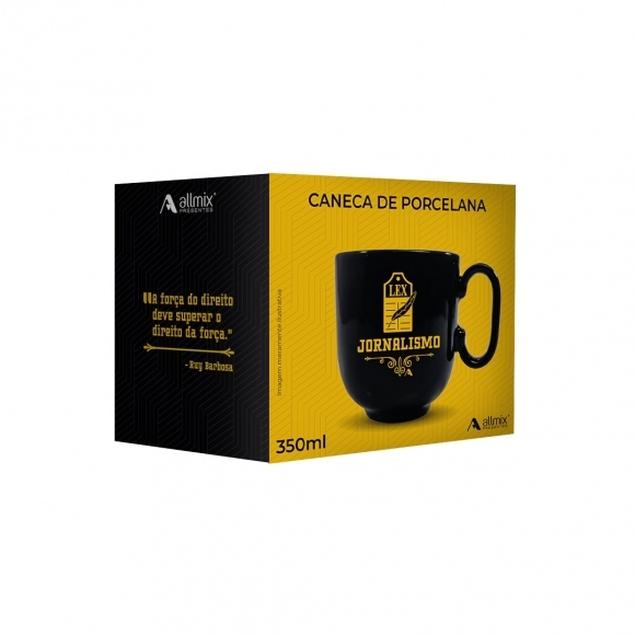 Presente ideal para amantes do Jornalismo, Produzido em caneca de porcelana,cor preta e estampado com a cor amarela, contem símbolo do Jornalismo e dizeres" Jornalismo é publicar aquilo que alguém não quer que se publique. Todo o resto é publicidade- George Orwell".
