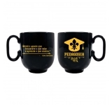 Presente ideal para amantes de Pedagogia, Produzido em caneca de porcelana,cor preta e estampado com a cor amarela, contem símbolo da Pedagogia e dizeres "Feliz aquele que transfere o que sabe e aprende o que ensina- Cora Coralina".