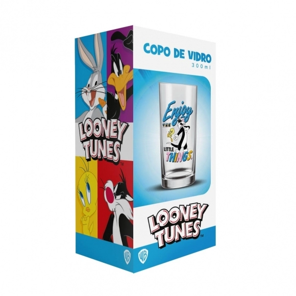 Coleção inspirada nos personagens da Looney Tunes. Produto produzido em vidro Incolor com estampa do Pernalonga Love. Possui 300ml, ideal para servir água, sucos e bebidas em geral.