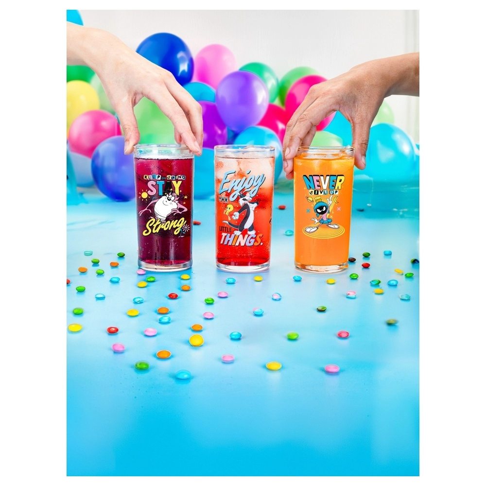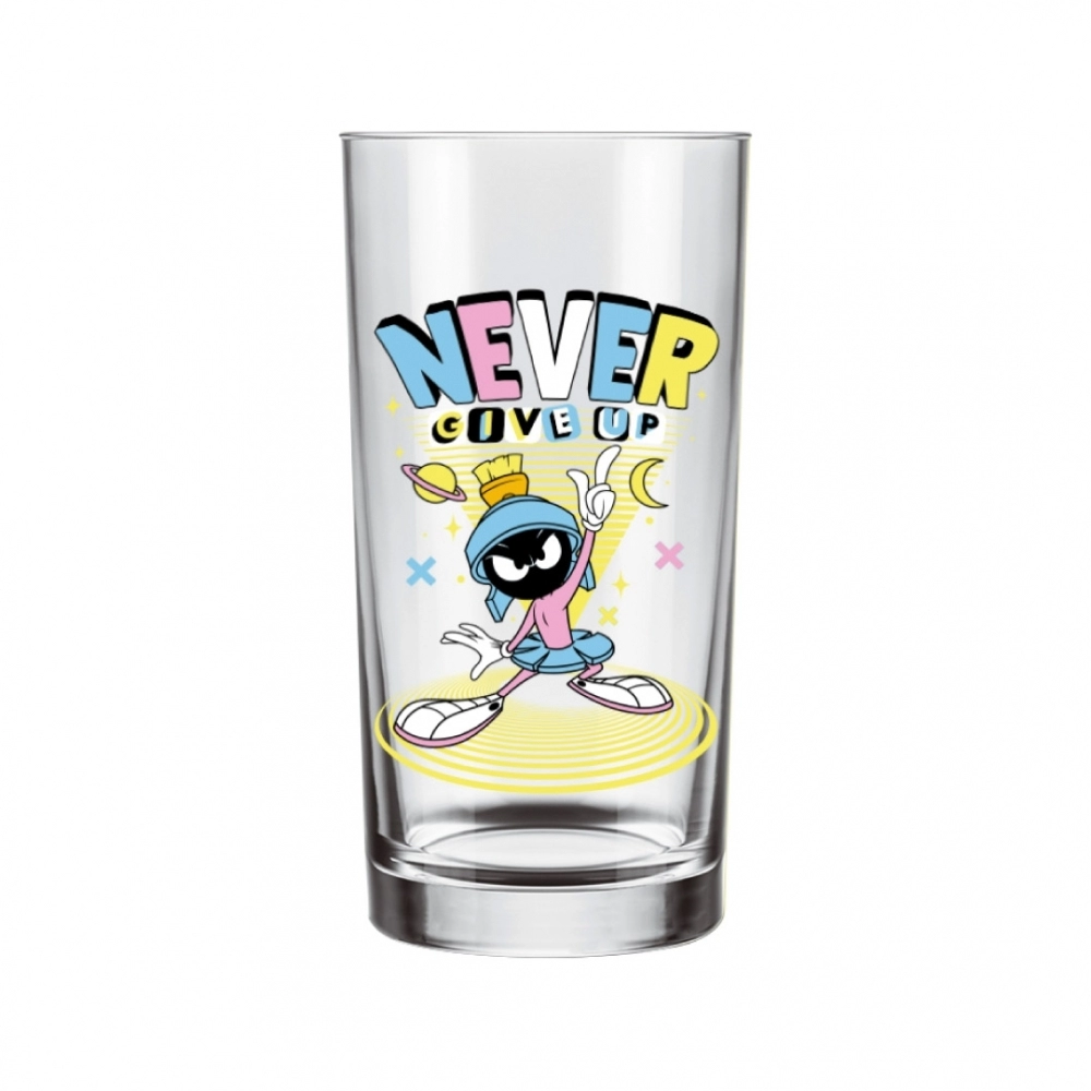 Coleção inspirada nos personagens da Looney Tunes. Produto produzido em vidro Incolor com estampa do Marvin. Possui 300ml, ideal para servir água, sucos e bebidas em geral.