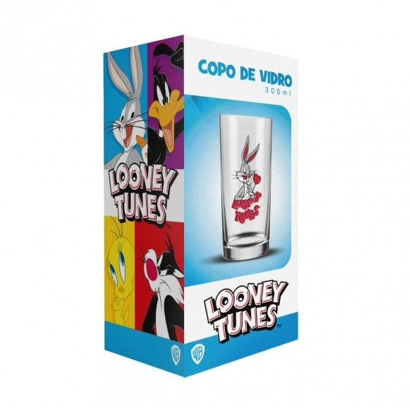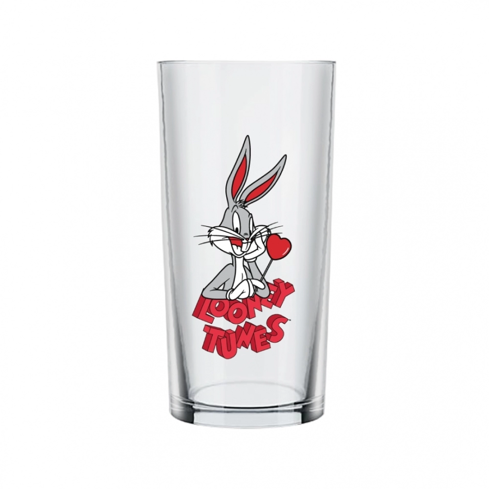 Coleção inspirada nos personagens da Looney Tunes. Produto produzido em vidro Incolor com estampa do Pernalonga Love. Possui 300ml, ideal para servir água, sucos e bebidas em geral.