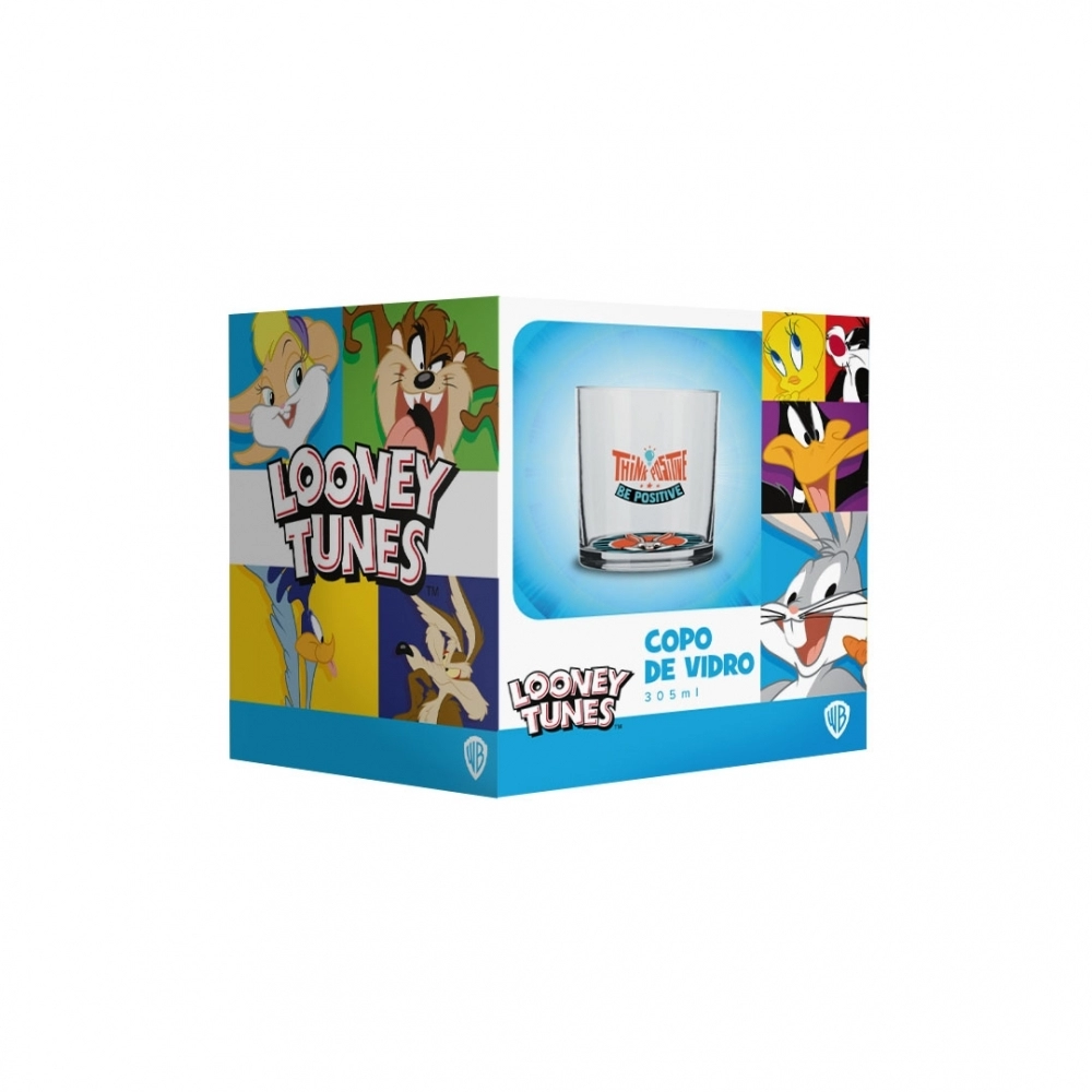 Coleção inspirada nos personagens da Looney Tunes. Produto produzido em vidro Incolor com estampa do Marvin. Possui 305ml, ideal para servir whisky, drinks e bebidas em geral.