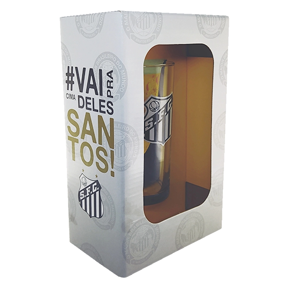 Coleção inspirada nos torcedores do Alvinegro Praiano. Produzido em vidro incolor e acabamento estampado com escudo do time. Possui 300ml, ideal para servir Sucos e bebidas em geral. Contém embalagem personalizada, sendo uma excelente opção para presentes.