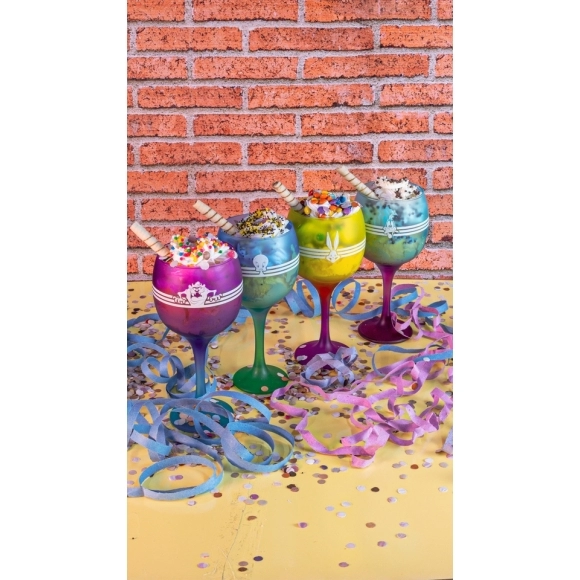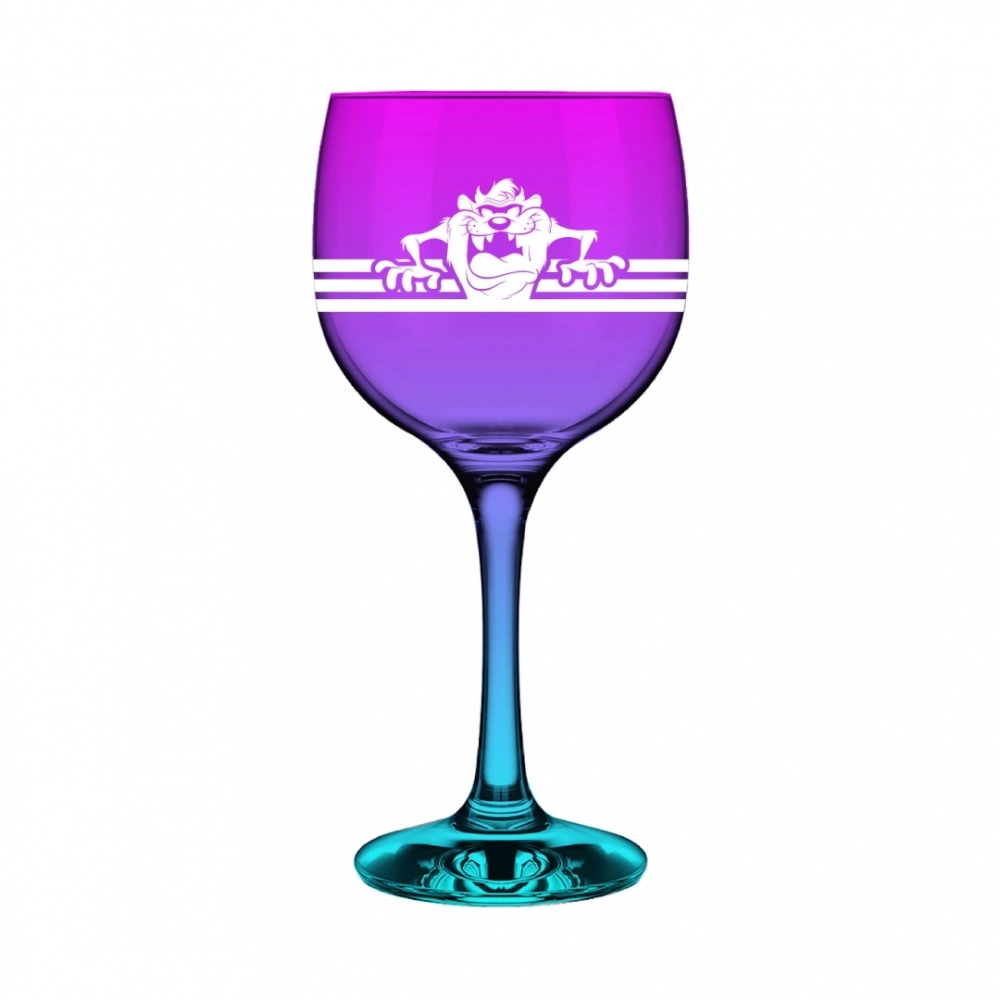 Coleção inspirada nos personagens da Looney Tunes. Produto produzido em vidro com acabamento fosco. Disponível nas cores degradê Azul e Roxo (Taz), Roxo e Amarelo (Pernalonga), Verde e Azul (Piu Piu) e Roxo e Verde (Patolino). Possui 615ml, ideal para servir água, sucos e bebidas em geral.