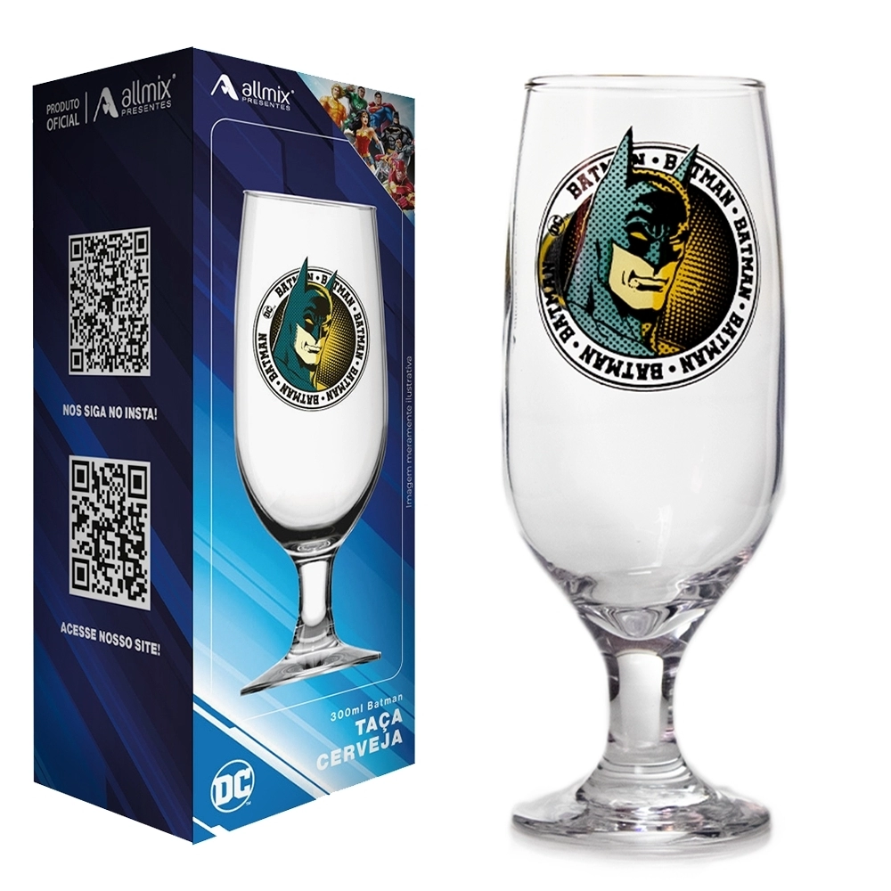 A Taça Floripa 300ML DC Tradicional Batman é a escolha perfeita para quem ama o universo dos super-heróis e deseja adicionar um toque de estilo e sofisticação à sua coleção. Com a clássica logo do Batman e um design arrojado, esta taça é ideal para servir bebidas em grande estilo, seja em eventos temáticos, festas ou bares e restaurantes.