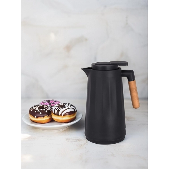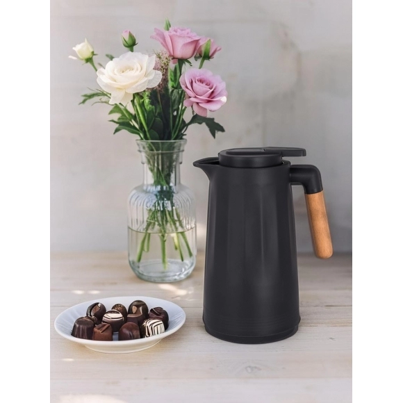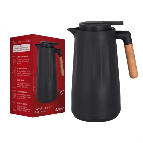 Garrafa Térmica Tina 1000ml com Cabo de Madeira - Preta