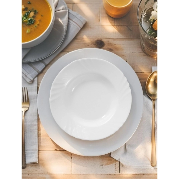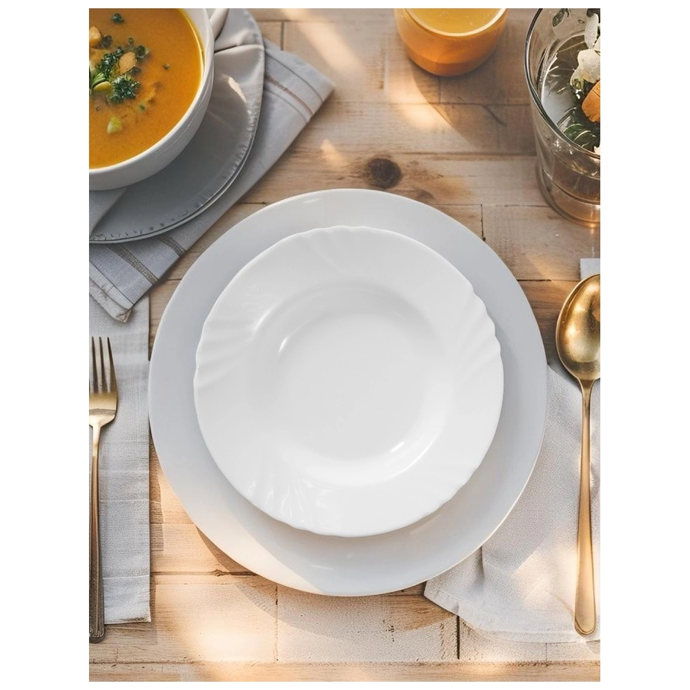 Este link contém: o Prato Fundo de Vidro Branco Zuria 22,5 cm, uma peça coringa para lojistas que desejam oferecer funcionalidade e beleza em um só produto. Feito em material opaline de alta durabilidade, este prato combina leveza, elegância e resistência térmica, ideal para sopas, caldos e refeições completas.