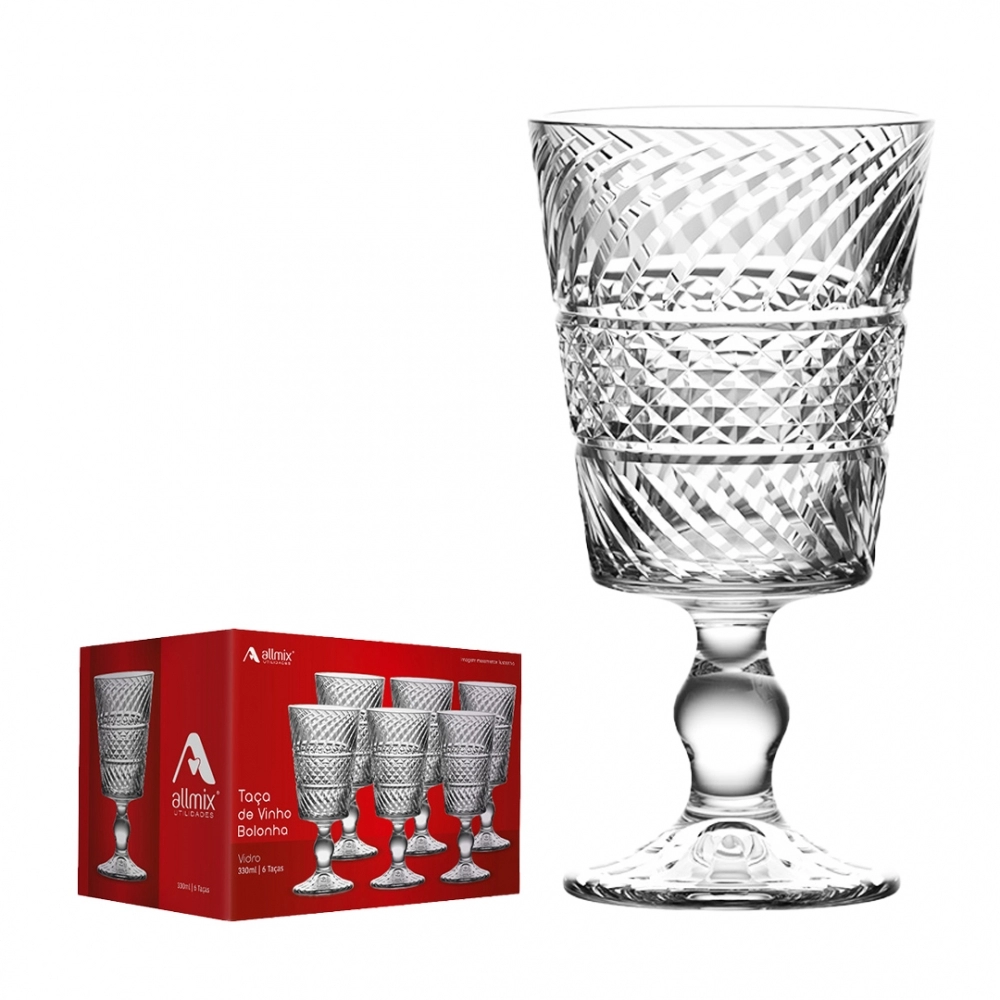 Este link contém: a Taça de Vinho de Vidro Bolonha 330ml Allmix, uma peça sofisticada e resistente que combina design elegante, brilho e praticidade, ideal para bares, restaurantes, hotéis, buffets, supermercados e lojas de utilidades domésticas que desejam oferecer produtos de alto padrão e excelente custo-benefício.