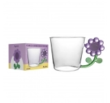 Feita em vidro borossilicato, é leve, resistente e suporta variações térmicas, sendo ideal para cafés, chás, cappuccinos ou drinks frios. Seu design em formato de pétalas com acabamento roxo vibrante transmite energia e sofisticação, tornando a caneca um destaque na mesa e um item desejado para presentear.