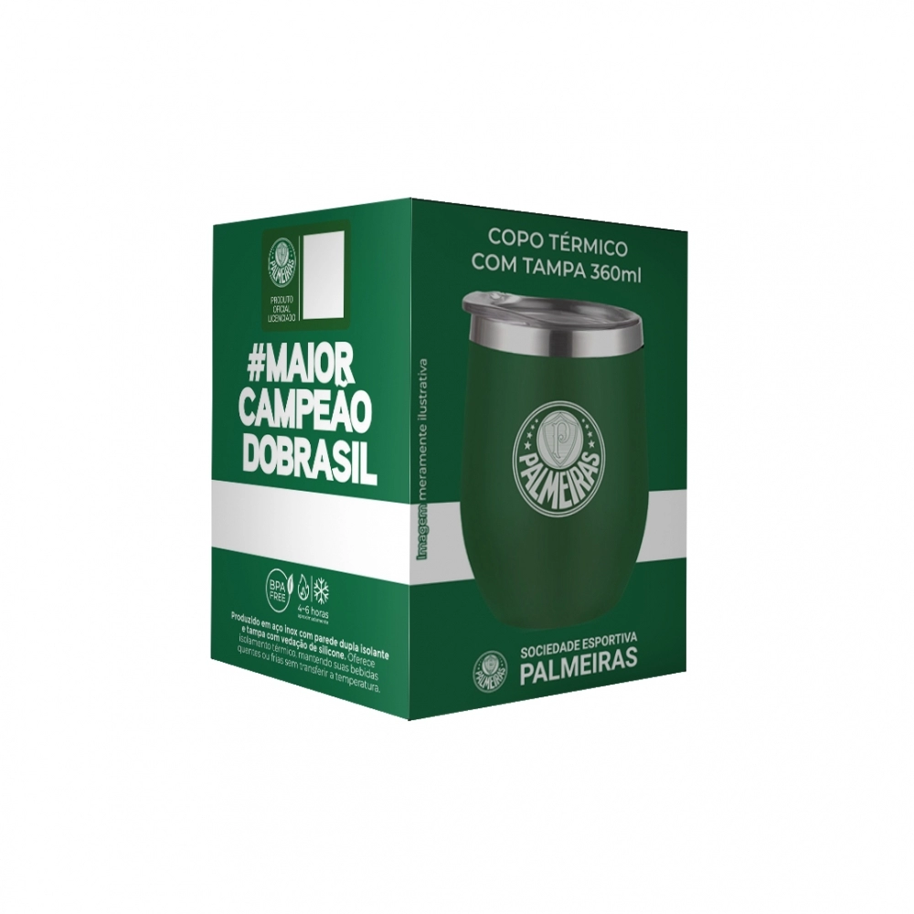Este link contém: o Copo Térmico Inox com Tampa 360ml Palmeiras Allmix, uma peça funcional, resistente e ideal para quem busca praticidade térmica com identidade esportiva e design moderno. Com acabamento premium e estampa oficial do time, o copo é perfeito para torcedores, colecionadores, lojas esportivas, lojas de presentes, cafeterias, papelarias, conveniências e utilidades domésticas, oferecendo excelente valor agregado e forte apelo visual no PDV.