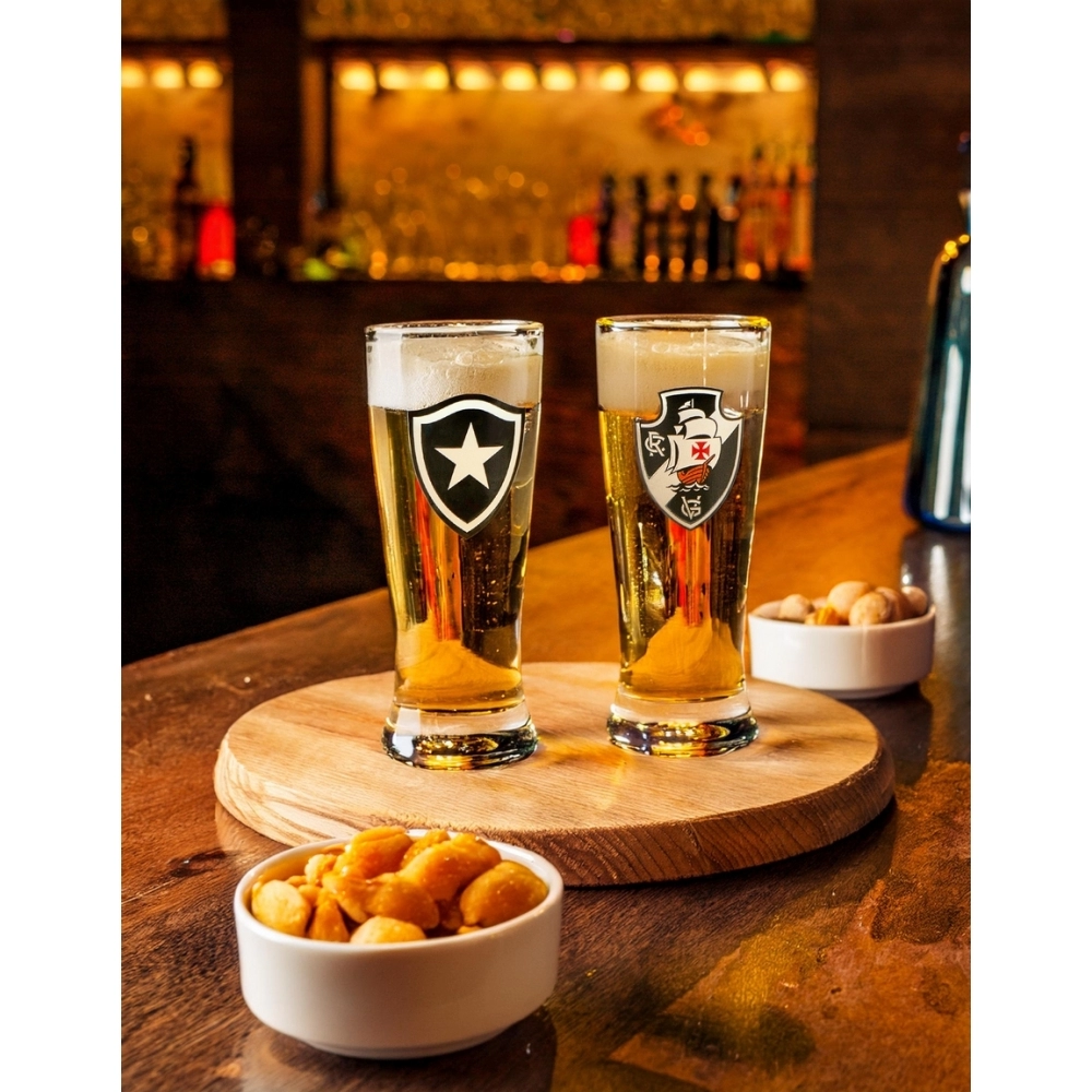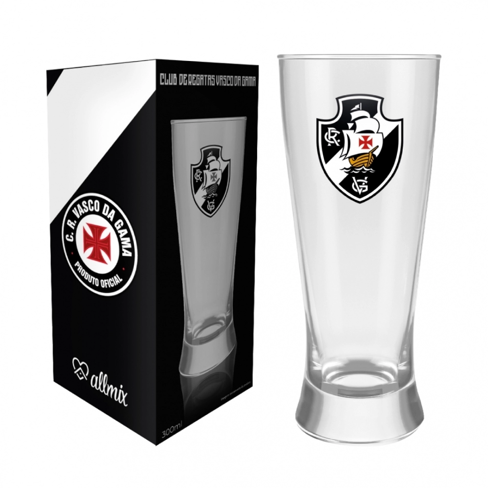 Coleção inspirada nos torcedores do Vasco. Produzida em vidro incolor com acabamento estampado e escudo decorado do time. Possui 300 ml, ideal para servir Chopes e Cervejas. Contém embalagem personalizada, sendo uma excelente opção para presentes.