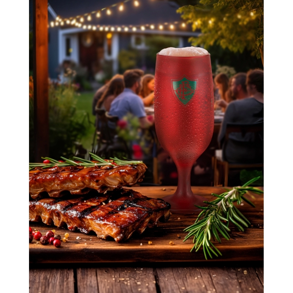 Coleção inspirada nos torcedores do Tricolor Fluminense. Produzido em vidro na cor marsala com acabamento fosco e estampa escudo do time em verde e acompanha dizeres "Isso aqui é Fluminense". Possui 300ml, ideal para servir Chopes e Cervejas. Contém embalagem personalizada, sendo uma excelente opção para presentes.