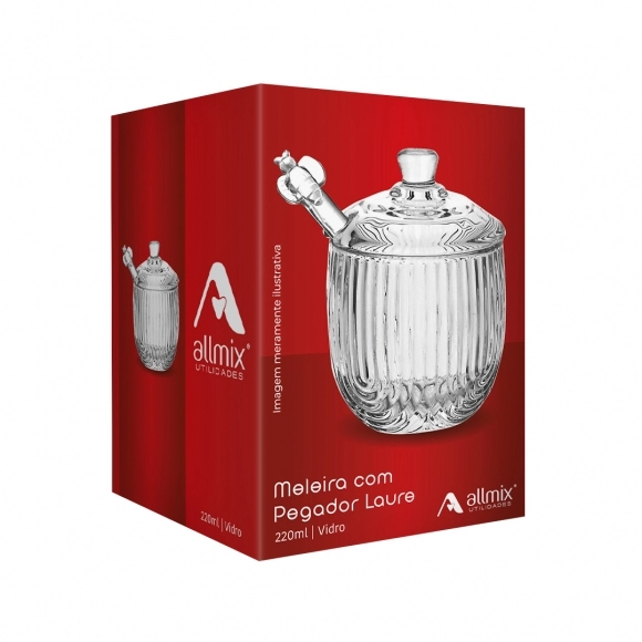 Este link contém: a Meleira de Vidro com Pegador Laure 220ml na luva com 1, uma peça indispensável para quem deseja servir mel de forma prática, higiênica e elegante. Seu design em vidro transparente permite visualizar o conteúdo, agregando charme à mesa posta e ao dia a dia.