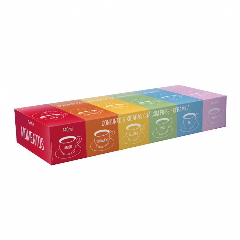 Este link contém: Jogo de xícaras de chá com pires em cerâmica Momentos Luva 140ml é perfeito para lojistas que desejam oferecer aos seus clientes um produto que une beleza, praticidade e qualidade artesanal. Com um design moderno e cores vibrantes, cada xícara com pires transmite alegria e aconchego, criando uma experiência diferenciada para momentos de pausa, cafés da tarde e encontros especiais.