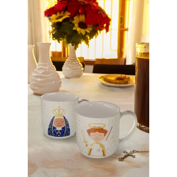 A Caneca Santinhos de 360ml com a imagem do Arcanjo é uma linda peça que une fé e estilo. Feita em cerâmica de alta qualidade, essa caneca apresenta uma estampa vibrante e detalhada do Arcanjo, simbolizando proteção e força espiritual.