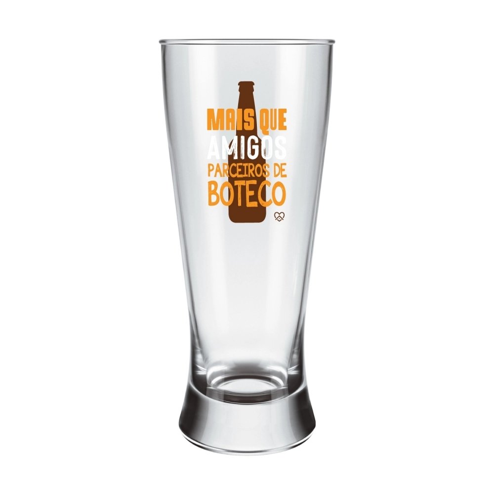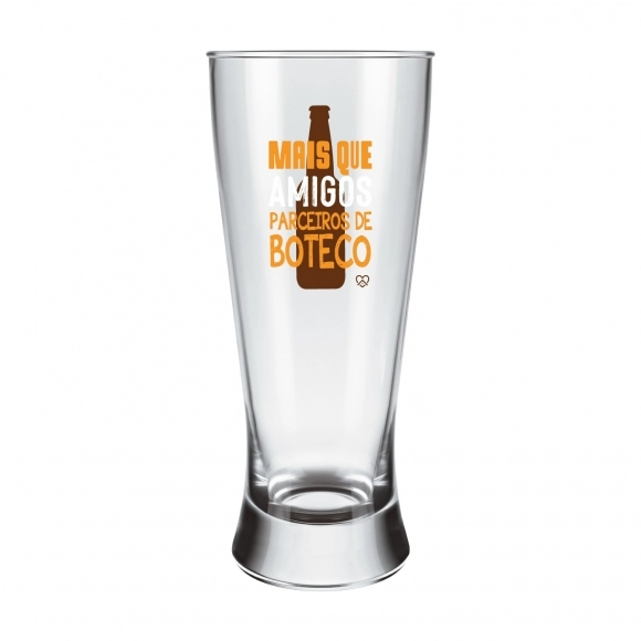 Coleção Happy Beer é indicada para os amantes de Cerveja! Produzida em vidro incolor com 1 copo em acabamento estampado com os dizeres "Mais que amigos, parceiros de boteco". Possui 300ml, ideal para servir Chopes e Cervejas. Contém embalagem personalizada, sendo uma excelente opção para presentes.
