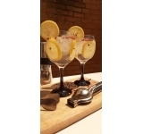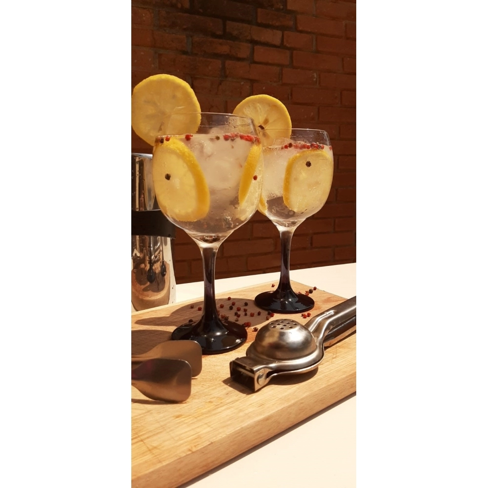Produto produzido em vidro incolor, possuindo a base com acabamento na cor preta. Possui 615ml, ideal para servir drinks diversos.
