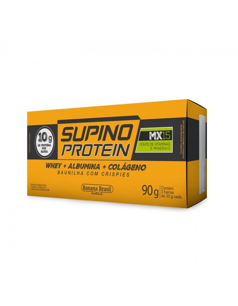 CATEGORIA ALIMENTAR>SEM GLÚTEN>Barra Supino Protein Baunilha e Cookies - Banana Brasil - Caixeta Com 3 Unidades De 30G