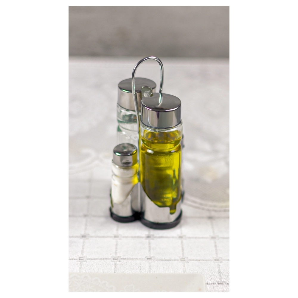 Prático e Funcional – O suporte mantém os galheteiros organizados e facilita o acesso ao azeite e vinagre, ideal para uso em restaurantes, hotéis e cozinhas domésticas.