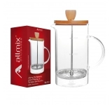 A Jarra Borossilicato Cafeteira Com Prensa 600ml com Tampa de Bambu é a solução perfeita para quem deseja um utensílio sofisticado e funcional. Seu material em borossilicato garante resistência ao calor e à variação de temperatura, tornando-a ideal para preparar e servir café com elegância. A tampa de bambu adiciona um toque de estilo natural, enquanto a prensa integrada proporciona um preparo eficiente e prático, ideal para o dia a dia ou para momentos especiais. A luva inclusa oferece ainda mais conforto e proteção durante o uso.